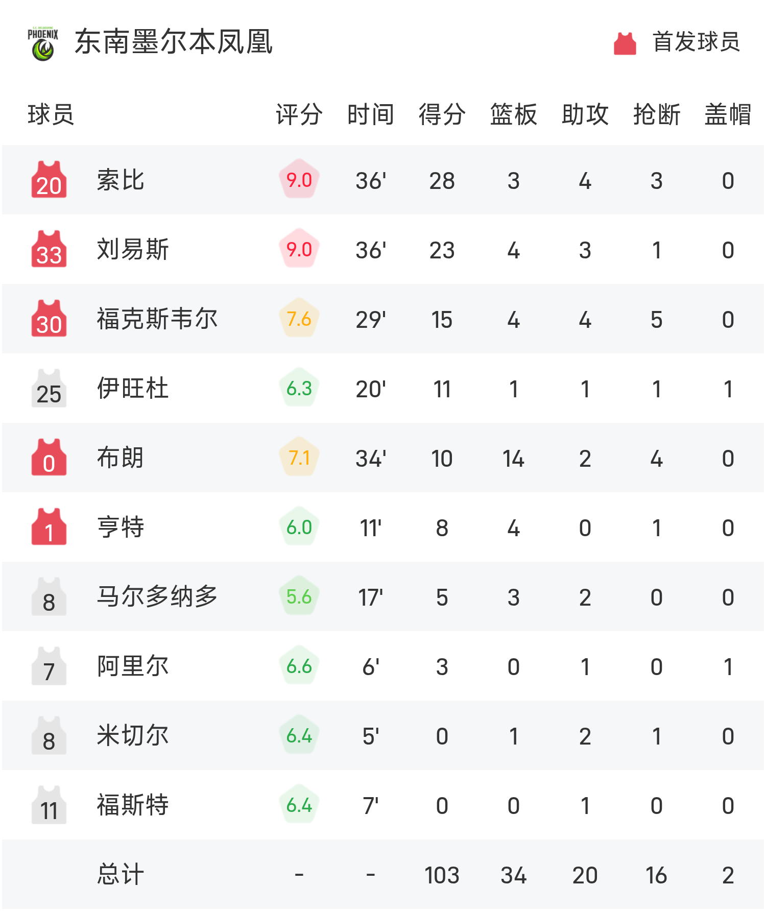 NBL战报:索比28分,东南墨尔本凤凰103-102险胜塔斯马尼亚跳伞蚁