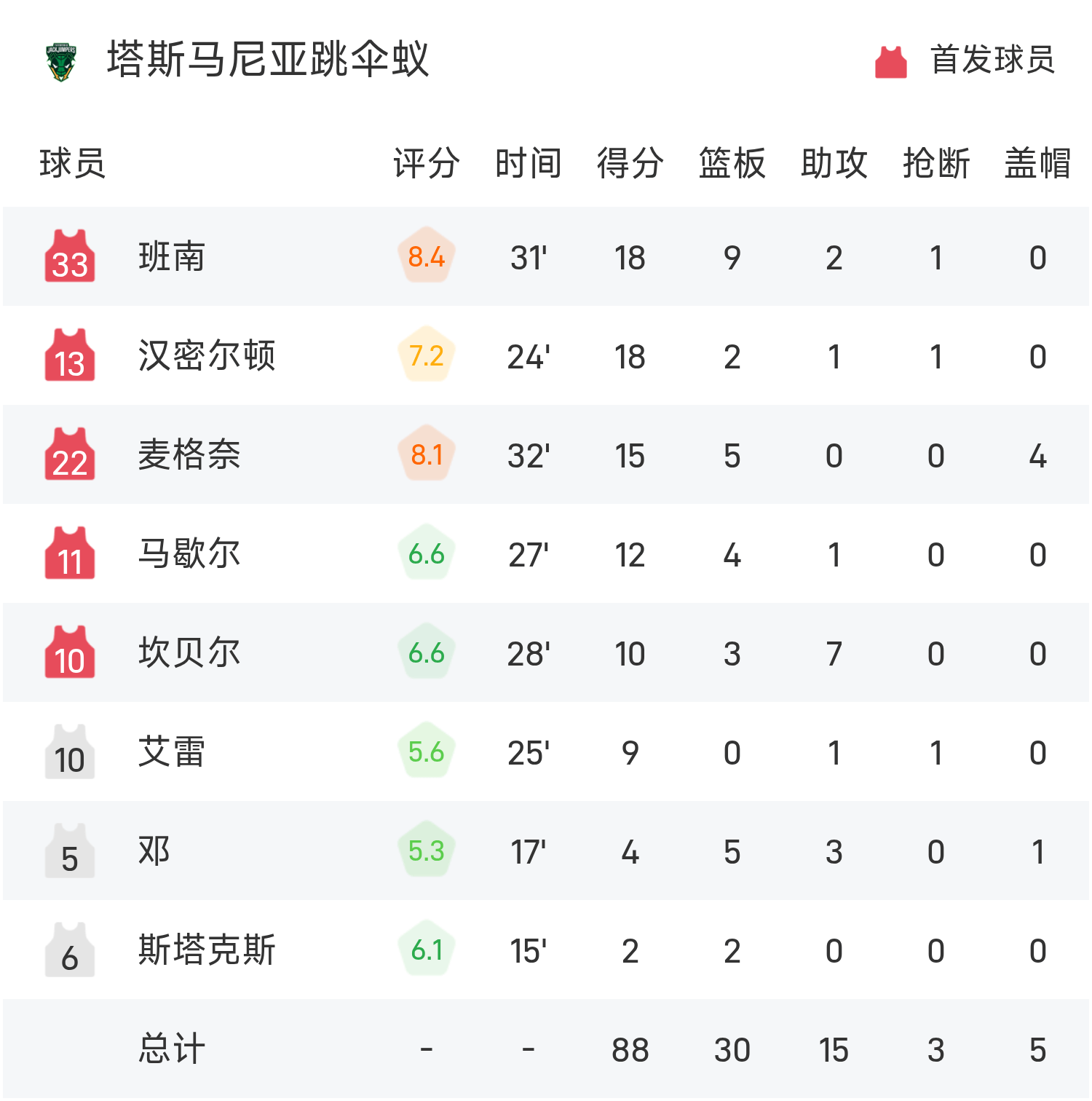 6686体育app10月26日讯 25/26赛季NBL 常规赛,悉尼国王对阵塔斯马尼亚跳伞蚁。双方全场战罢,悉尼国王89-90不敌塔斯马尼亚跳伞蚁。班南得到18分9板2助率队取胜,戴维斯空砍全场最高的22分6板5助。