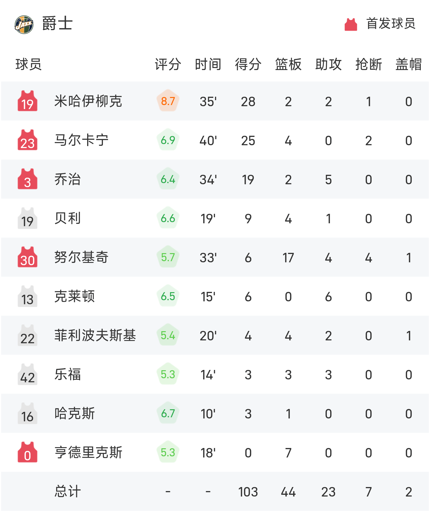 NBA战报:康宁汉姆31分10助,活塞114-103爵士