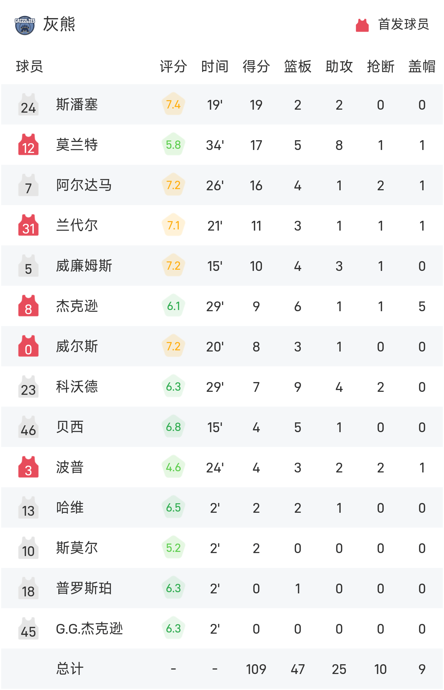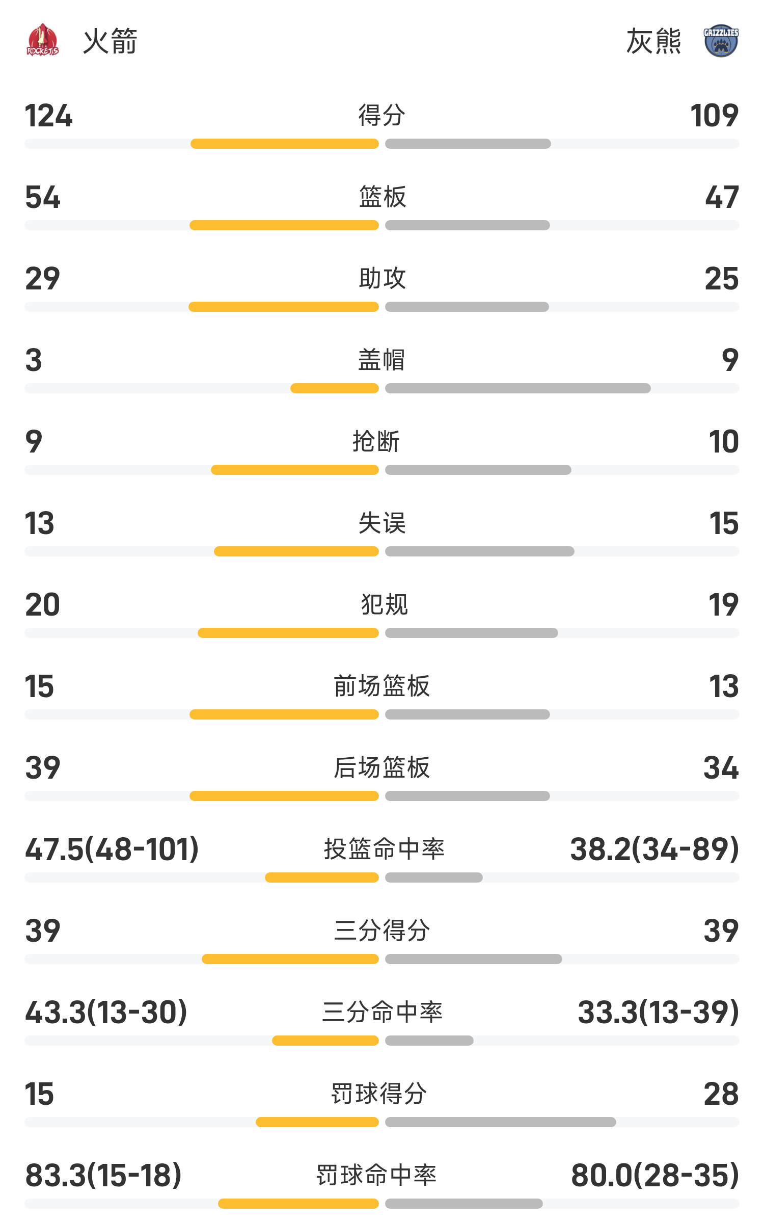 6686体育app11月06日讯 25/26赛季NBA 常规赛,灰熊对阵火箭。双方全场战罢,灰熊109-124不敌火箭。阿门·汤普森砍下全场最高的28分10板7助,率领火箭胜利取胜。