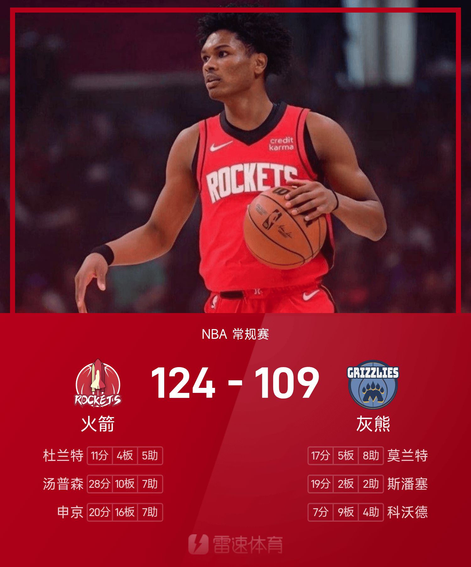 阿门轰下28分10抢篮板7助攻准三双,火箭拿下5连胜。