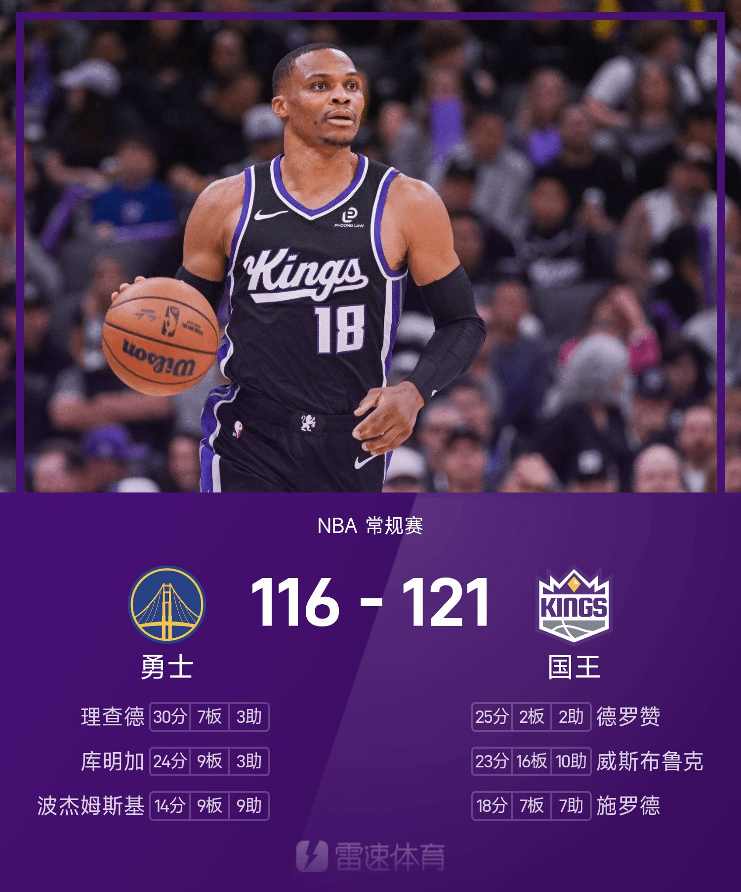 威少13投9中高效贡献23分16抢篮板10助攻,拿下赛季首次三双。