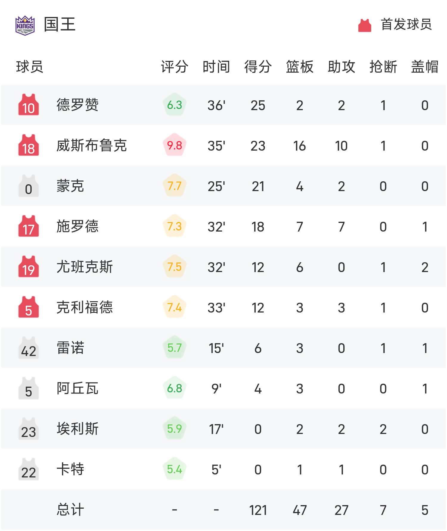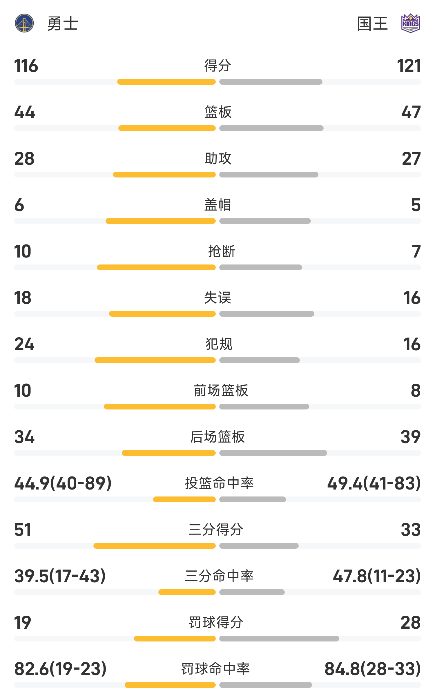 NBA战报:威少三双&关键截球,国王121-116击败勇士