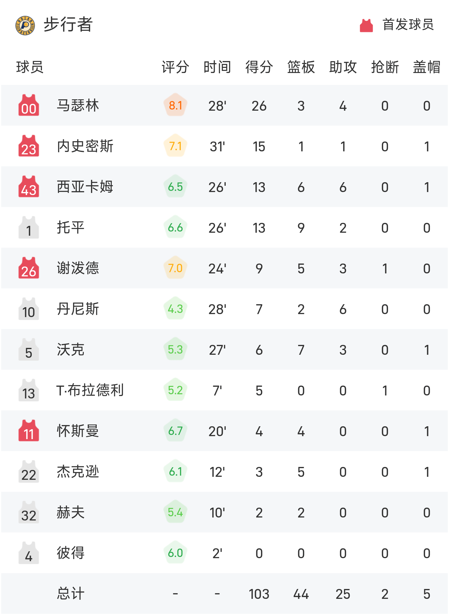 NBA战报:科沃德27分6板,灰熊128-103大胜步行者