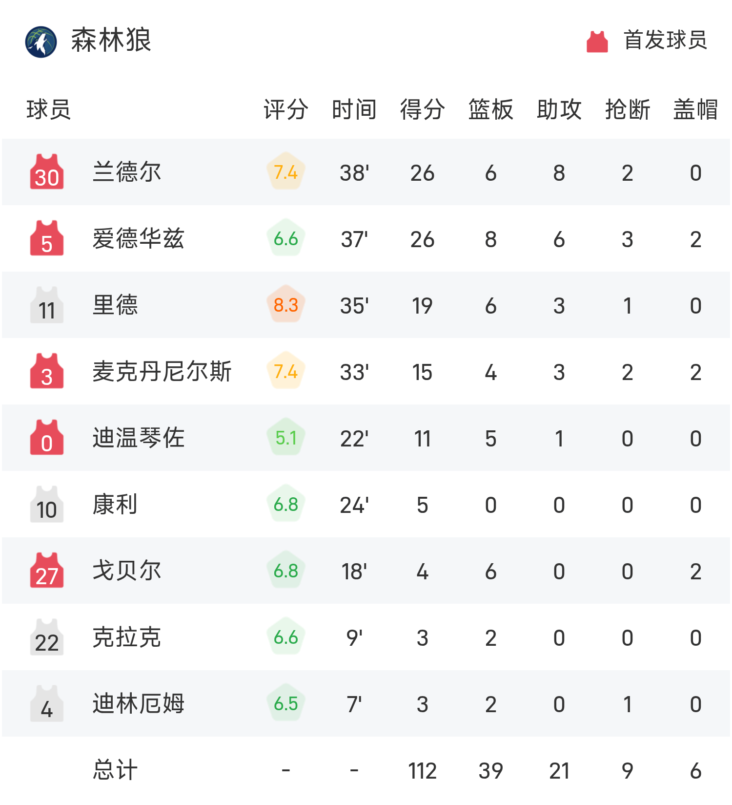 6686体育app11月16日讯 25/26赛季NBA 常规赛,森林狼对阵掘金。双方全场战罢,森林狼112-123不敌掘金。约基奇砍下全场最高的27分12板11助,率领掘金胜利取胜。