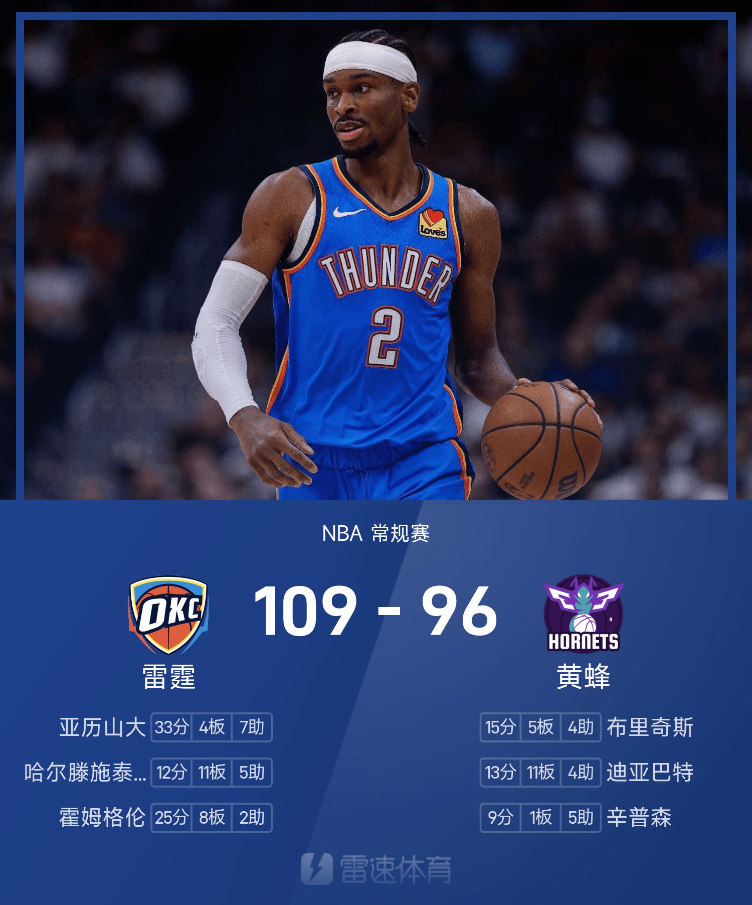 雷霆109-96黄蜂