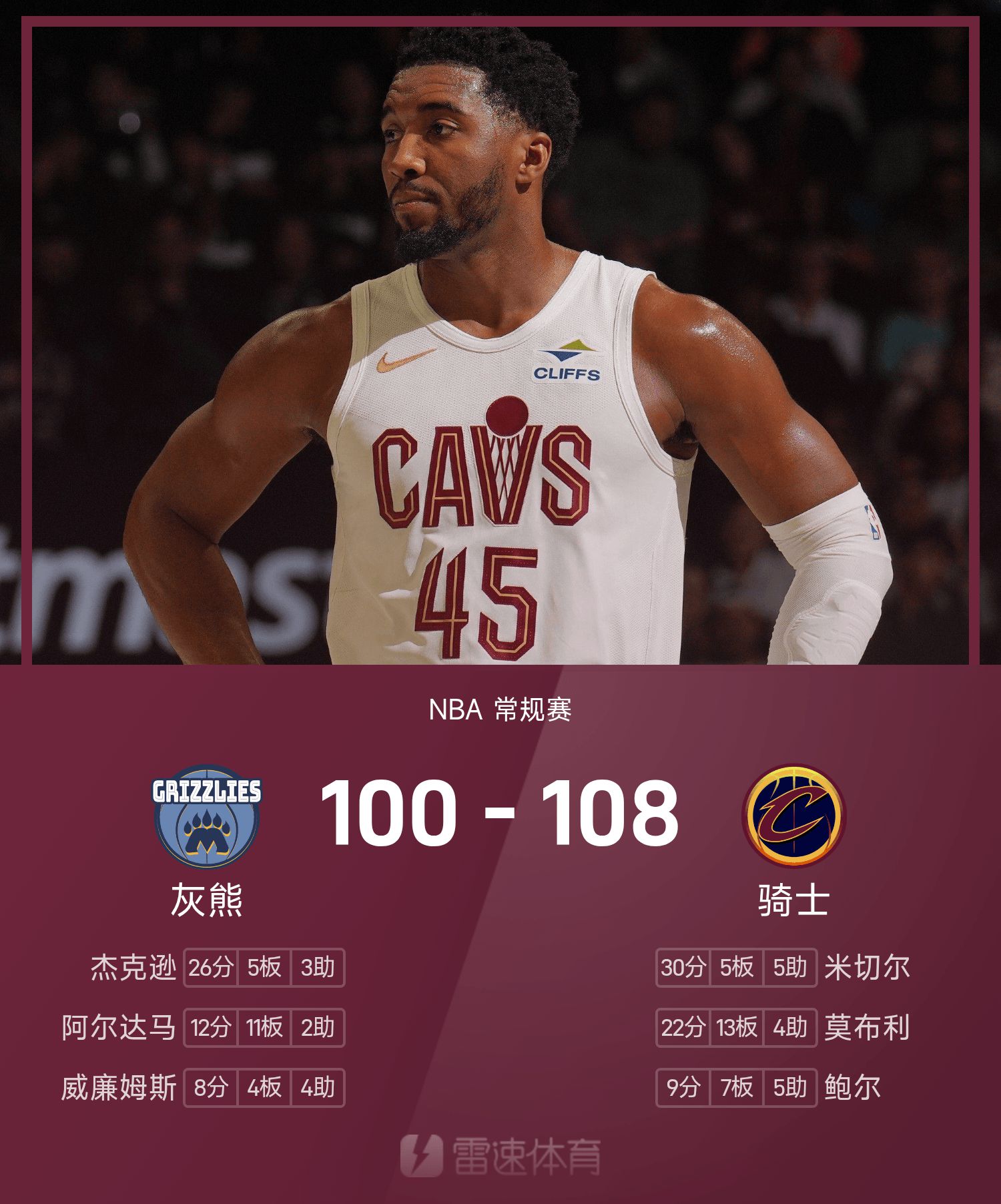 米切尔轰下30分助骑士主队场取胜