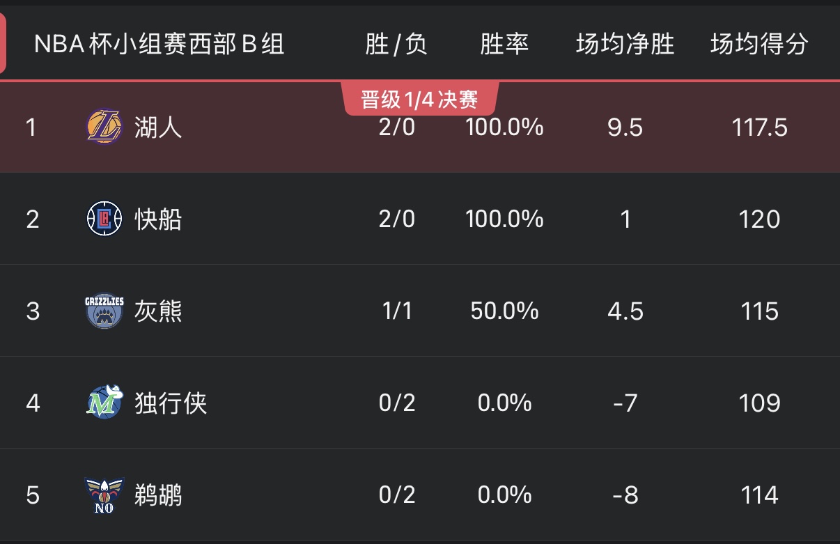 6686体育app11月15日讯 今日的NBA杯分组赛已经全部终结,而6个小组的排名也发生了变化。
