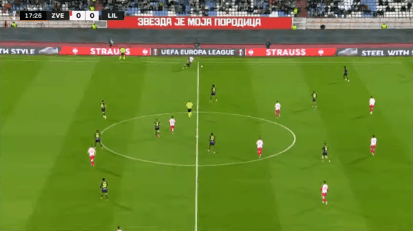 里尔首发阵容:1-奥兹尔、23-曼迪、18-姆本巴、24-维尔东克(86’15-佩劳德)、22-桑托斯(68’12-穆尼耶)、6-本塔莱布、27-科雷亚(67’7-帕尔多)、14-布罗霍尔姆、17-穆考(81’10-哈拉兹森)、32-布阿迪、29-伊格曼(67’9-吉鲁)