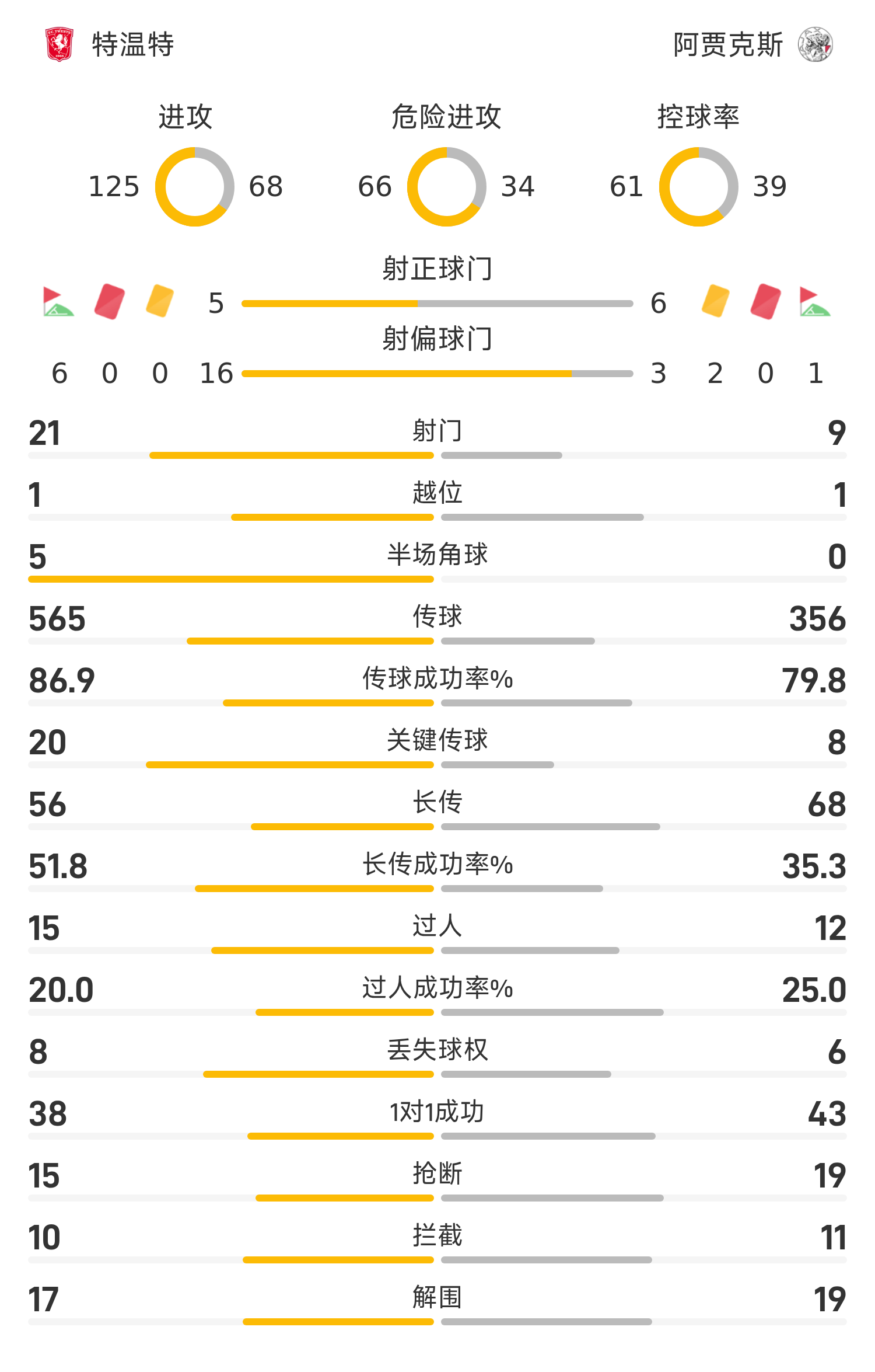 13’特温特开出战略边线球,范沃尔夫斯温克尔后点顶球偏出立柱