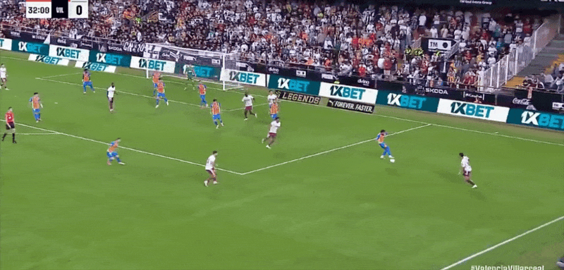 西甲半场:莫雷诺造点+主罚破门,黄潜1-0领跑位瓦伦西亚