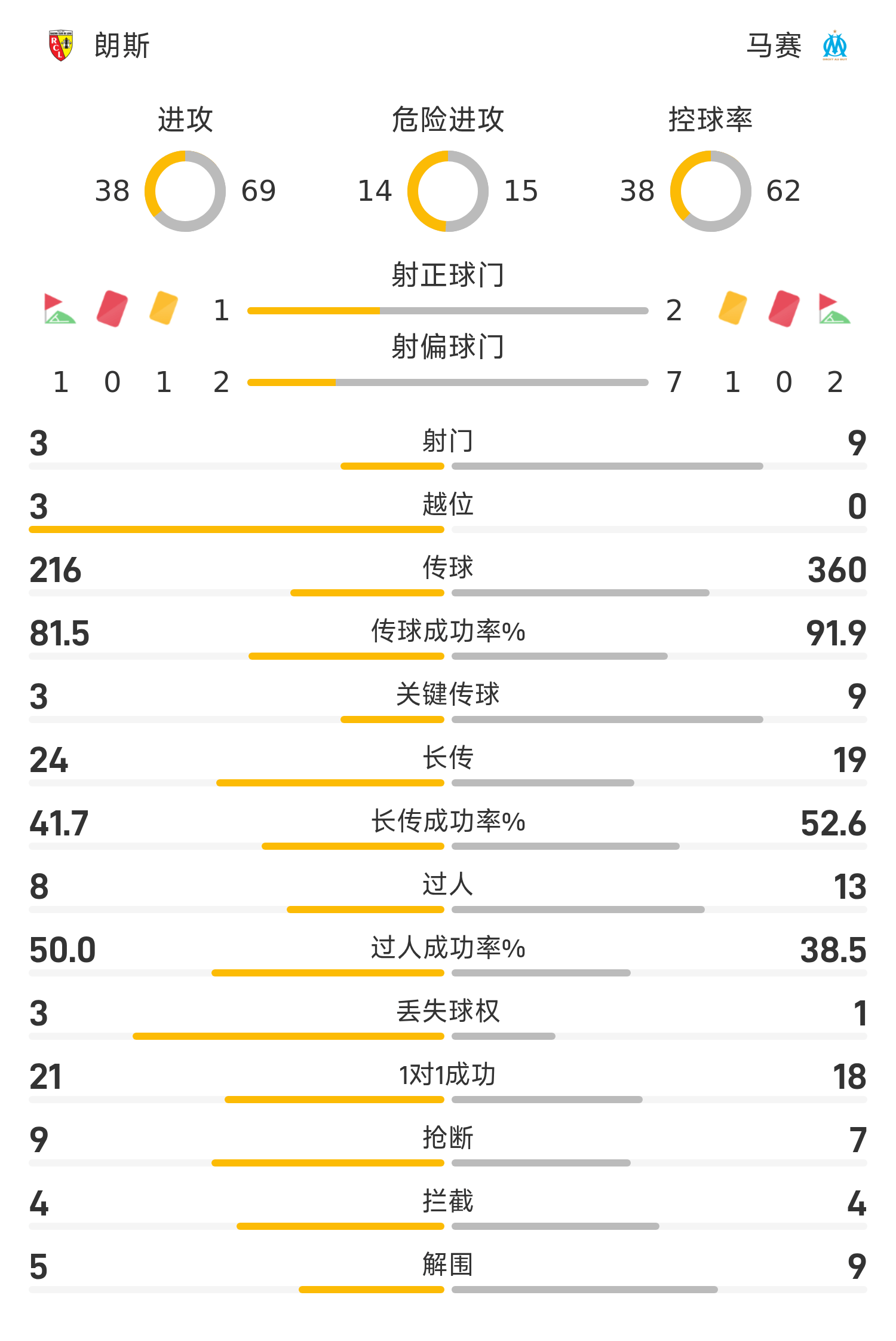 法甲半场:格林伍德破门,爱德华点射扳平,马赛1-1朗斯