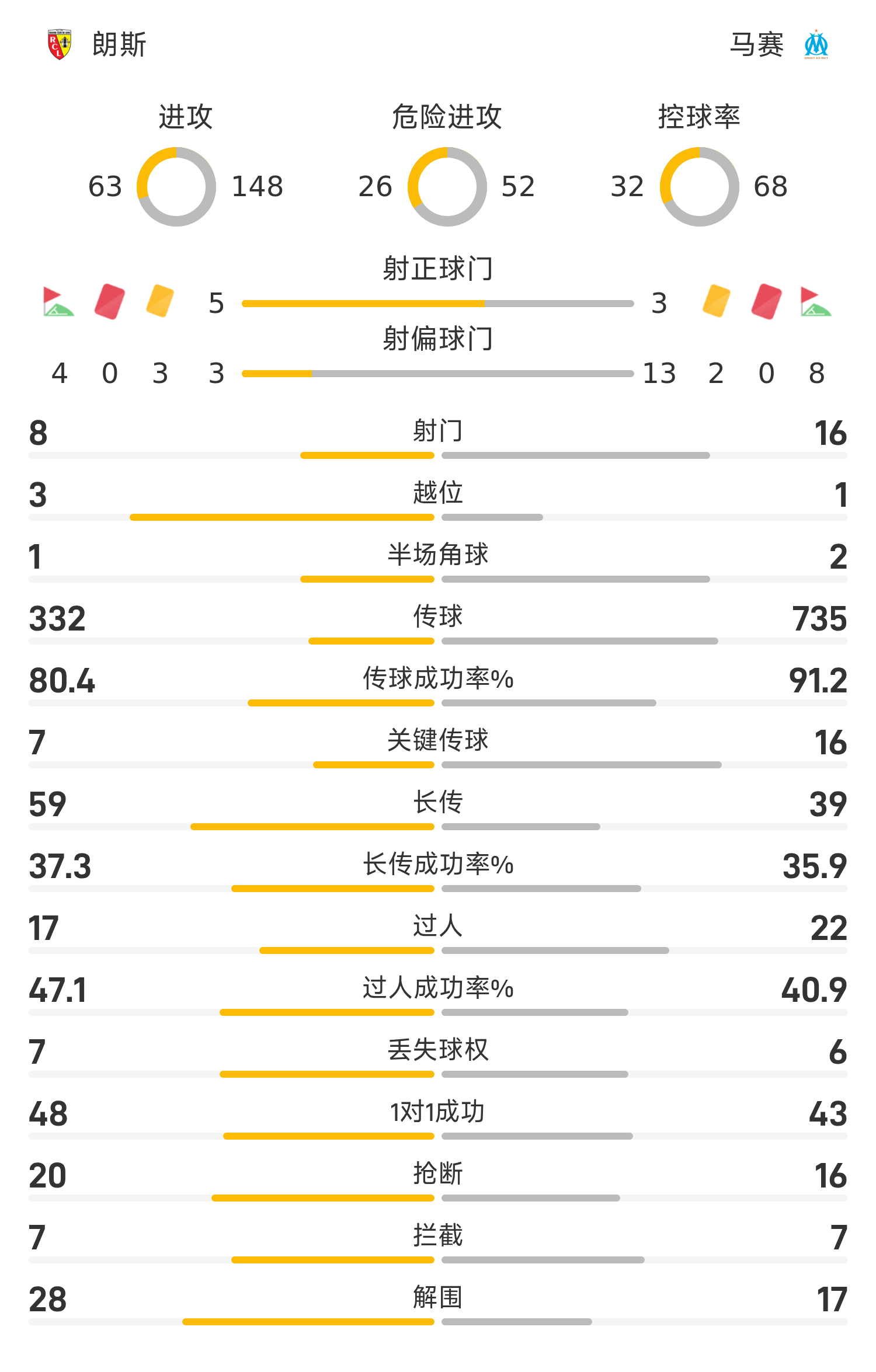 法甲战报:帕瓦尔送点+乌龙,青木破门难救主,马赛1-2朗斯