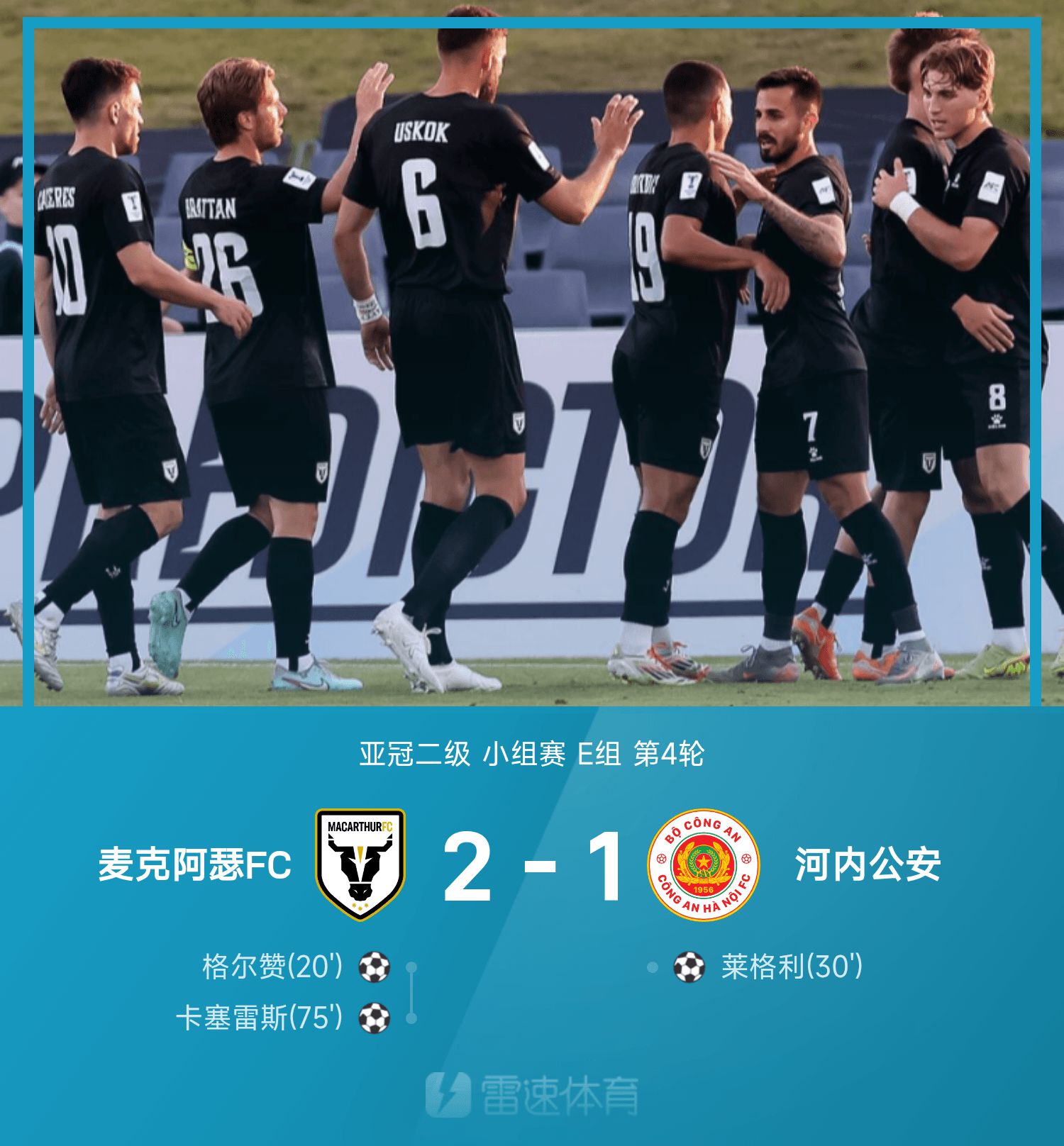 亚冠二级战报:格尔赞、卡塞雷斯破门,麦克阿瑟2-1河内