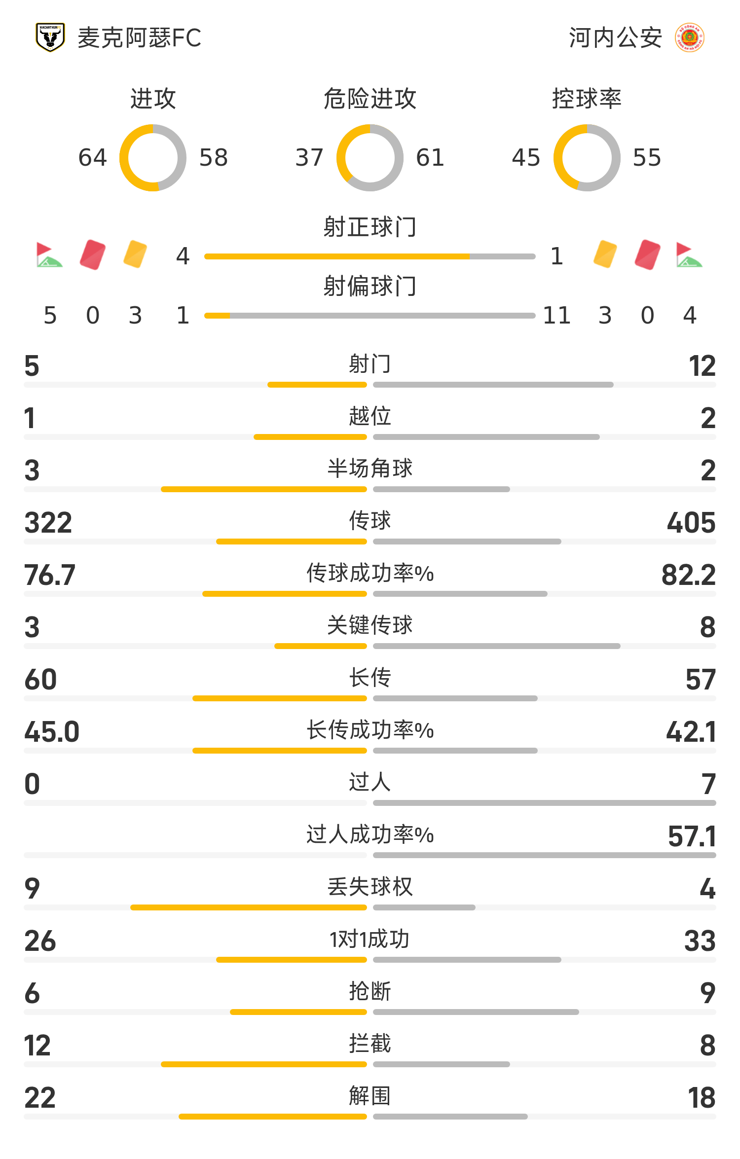 河内公安首发阵容:1-菲利普·阮、3-戈麦斯、21-陈庭仲、38-莱格利(83’10-莱奥)、6-毛克、19-阮光海、7-高光荣、88-黎文都、8-维托尔(83’22-范明福)、30-希纳、72-阿兰(43’9-阮庭北)