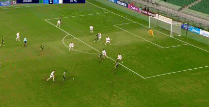18’曹永竞右路传禁区,恩加德乌十二码点附近扫射,角度太正被没收