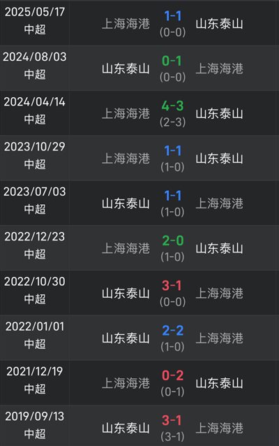 从双方近期交战数据来看,近10场各项赛会中,山东泰山2胜4平4负。自2022年10月30日主队场3-1击败海港以来,泰山已经1093天无法击败对手。