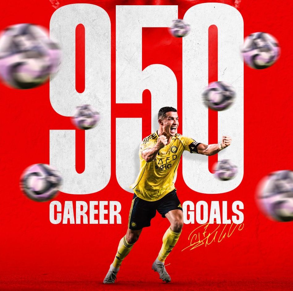 C罗达成职业生涯第950球里程碑,距千球大关还差50球