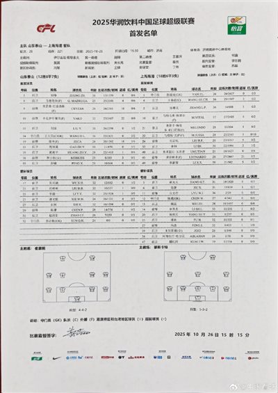 6686体育app10月26日讯 博主“牛眼看球”透露,山东泰山临时变更的与海港一役的首发,其中路易斯·洛佩斯下场,彭啸变为首发。