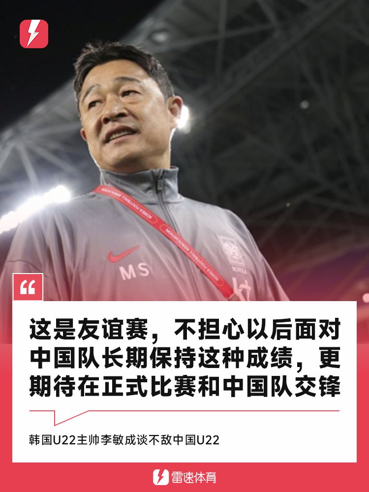 韩国U22主帅谈不敌中国U22:这是友谊赛,更多的是练兵