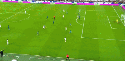 37’阿迪尔三秒区内小角度大力抽射,皮球击中边网